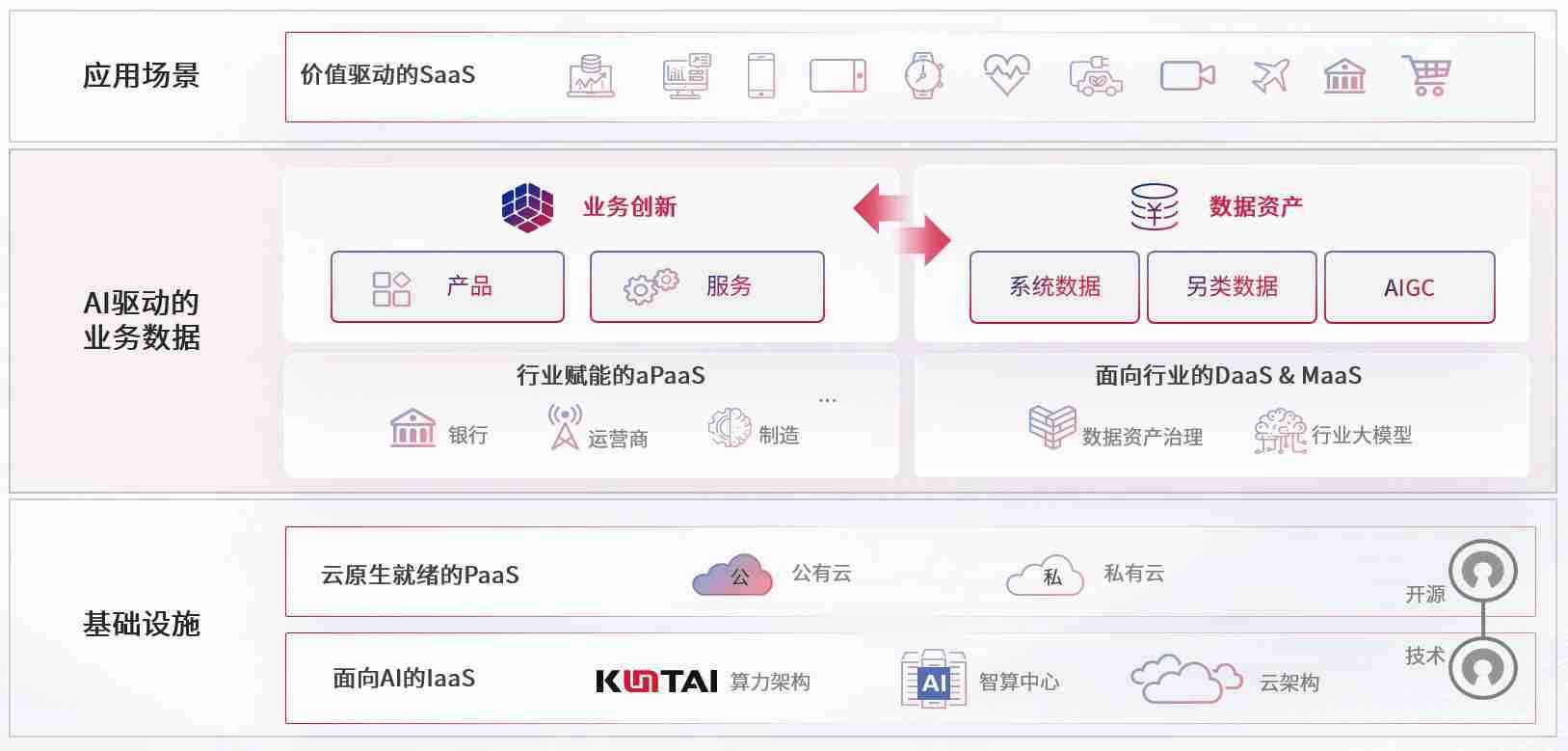 数字时代,,围绕企业数字化转型的关键要素,,z6com尊龙数码开创性的提出数云融合战略和技术体系框架,,,,着力在云原生、、、、数字原生、、AI原生和信创产业上架构产品和服务能力,,,为处在不同数字化转型阶段的快消零售、、、汽车、、金融、、、、医疗、、、政企、、、、教育、、运营商等行业客户提供泛在的敏捷IT能力和融合的数据驱动能力,,构建跨界融合创新的数字业务场景和新业务模式,,助力企业级客户建立面向未来的核心能力和竞争优势,,全面推动社会的数字化、、、智能化转型升级。。。。